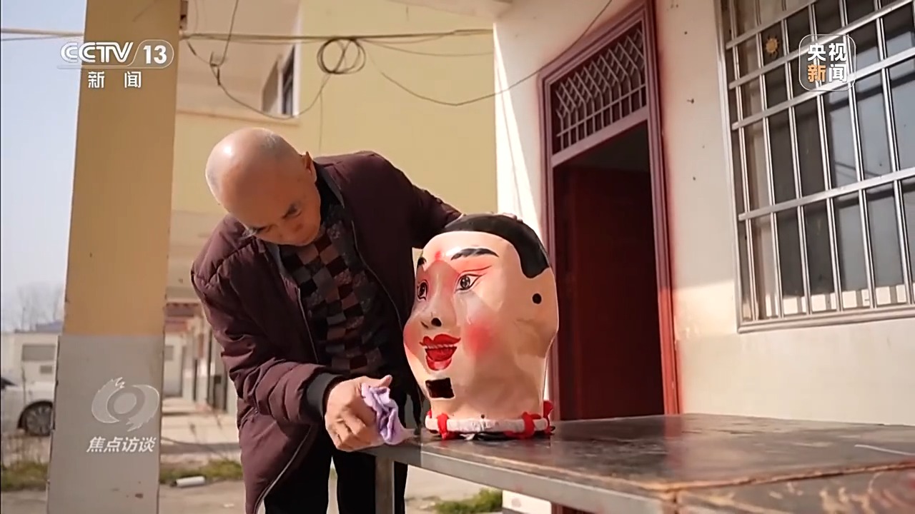 戴上三斤多的大头佛头套,付建德仍然可以步履矫健地登上1.8米高的台子,一个动作、一个手势,威风凛凛的狮子便随之而动。