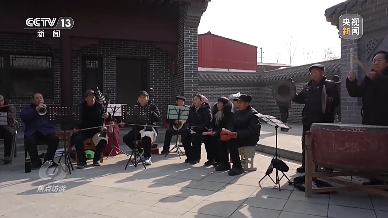 这边是锣鼓喧天的舞狮,另一边,文艺爱好者赵群波组织的豢龙村民乐队也在紧张筹备着。