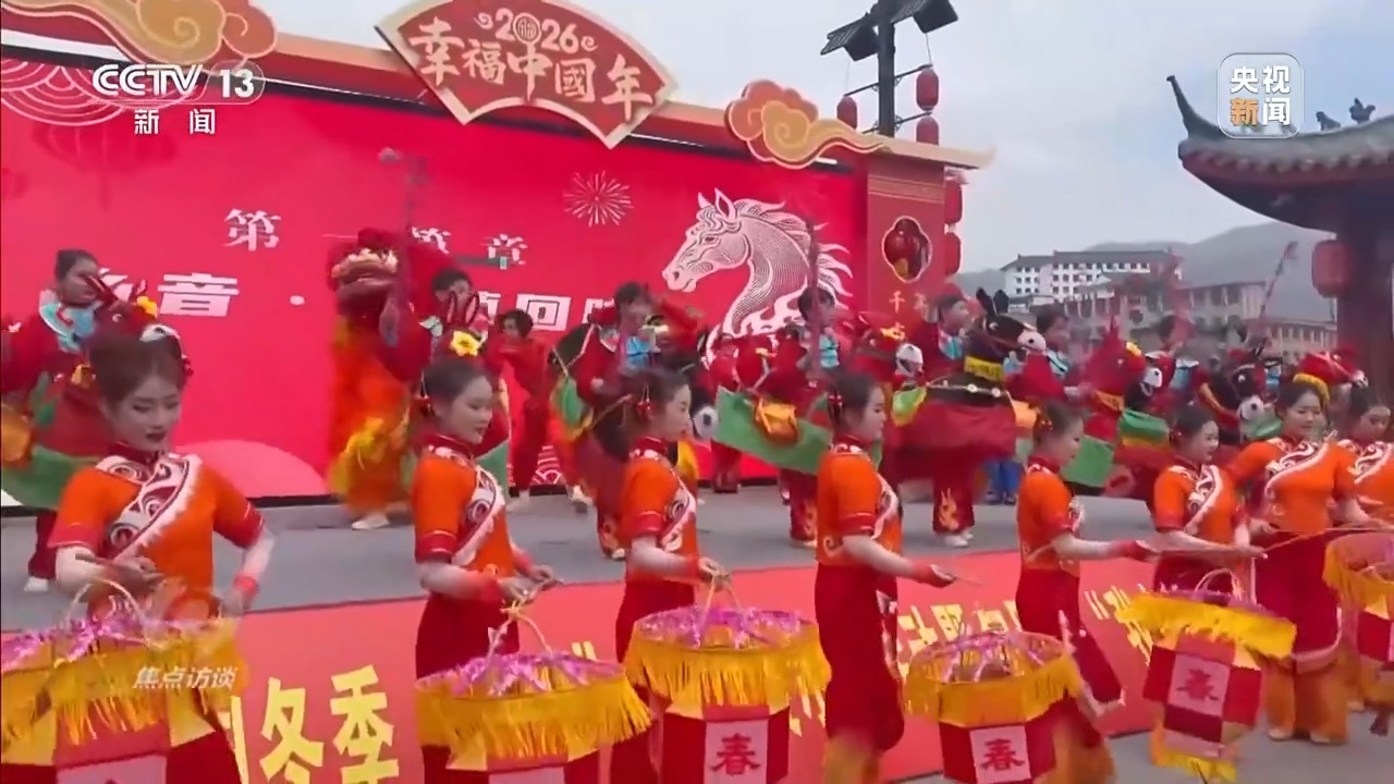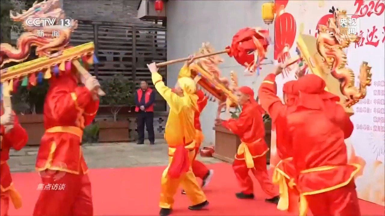 在重庆南川区东街文旅小镇,村民们演出的石溪板凳龙、打起莲箫心情欢等非遗展演引起阵阵喝彩。同步启动的年货节成为市民游客消费的新选择。
